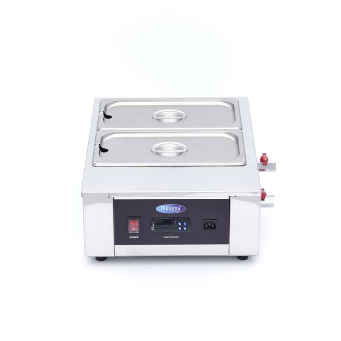 Šokolaadi sulatamisel on alati oht, et šokolaad võib kõrbeda. Kuid šokolaadi sulatamisel au bain marie on sulamisprotsess järkjärgulisem ja kaudne kuumutamine takistab šokolaadi põlemist. Temperatuur on reguleeritav vahemikus 3 kuni 100 °C ja seda on lihtne lugeda šokolaadisulataja esiküljel olevalt digitaalnäidikult. Peate olema ettevaatlik, et šokolaad ei puutuks kokku veega, sest see põhjustab šokolaadi klompimist. Eemaldage kõigepealt esipakend, et vältida tilkade sattumist teise GN-pakendisse. Kas vajate kõigepealt tagumist mahutit? Seejärel veenduge, et kaane pannakse esipakendi peale.