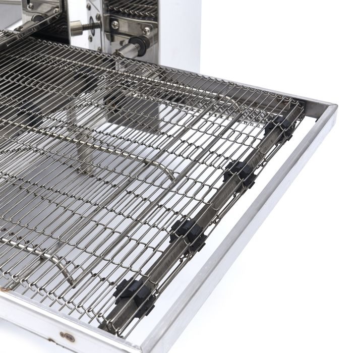 See pizzaahi küpsetab konveieril kuni 30 pitsat tunnis. Tänu kahekordsele kuumutusele, millel on mõlemal oma digitaalne näidik, on ideaalne temperatuur hõlpsasti seadistatav. Noolte abil saate valida soovitud temperatuuri vahemikus 50 kuni 280ºC. Lisaks on pizzaahjul kiiruse lüliti, et reguleerida konveierilindi kiirust. See lauamudel sobib lauale või töölauale asetamiseks.