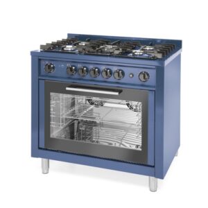 Gaasipliit KitchenLine 5 põletiga, elektrilise konvektsioonahjuga ning grilliga, sinine värv, GN1/1, 230V/2900W, 14,3kW, 900x655x(H)850mm