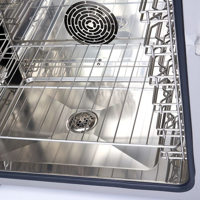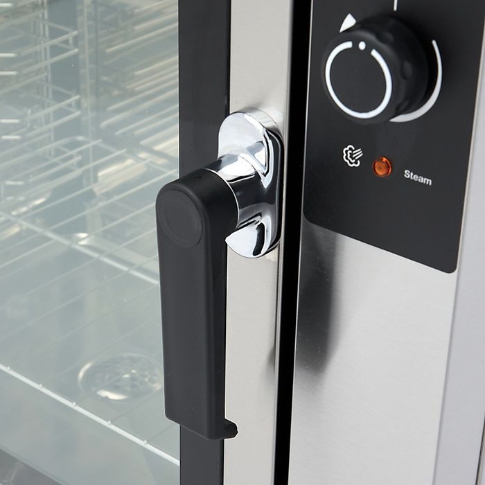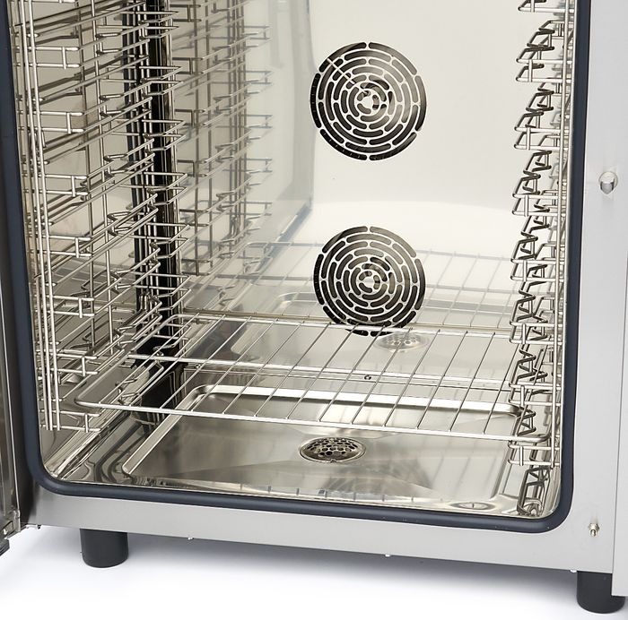 Selle mudeliga kombiauruahju abil saate aurutada liha, kala või köögivilju ning säilitada vitamiine, maitset ja värvi kauem kui teised toiduvalmistamismeetodid. Aurutamine takistab ka toidu kuivamist ja muudab selle külaliste taldrikul suurepäraseks. Kuuma õhu ja auru kombinatsioon teeb sellest kombiauruahjust mitmekülgse köögiseadme, mis võimaldab asendada paljusid köögitarbeid. See kombiauruahi on ideaalne kasutamiseks 1/1 GN-plaatide või 60 x 40 cm küpsetusplaatidega. Korraga mahub kuni kümme plaati.
