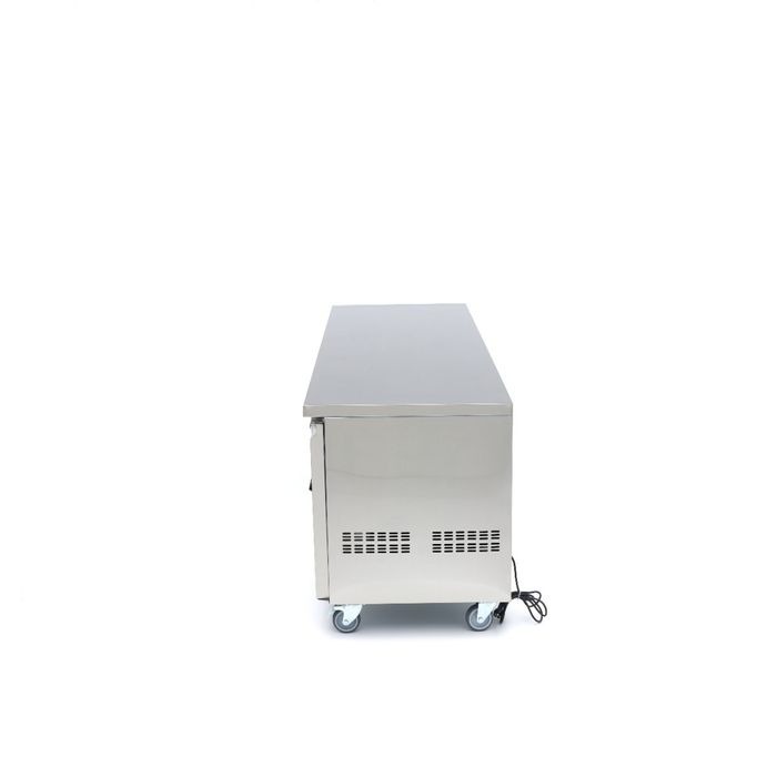 Selles letikülmikus saab hoida rohkelt jahutatud tooteid. Sellel külmikul on avar tööpind laiusega 223 cm ja sügavusega 70 cm. Seal on piisavalt ruumi kahele või kolmele inimesele, et töötada ettevalmistuste või ilusate roogade kokkupanekuga. Ja tooteid saab hõlpsasti välja võtta tööpinna all olevast jahutusseadmest.
