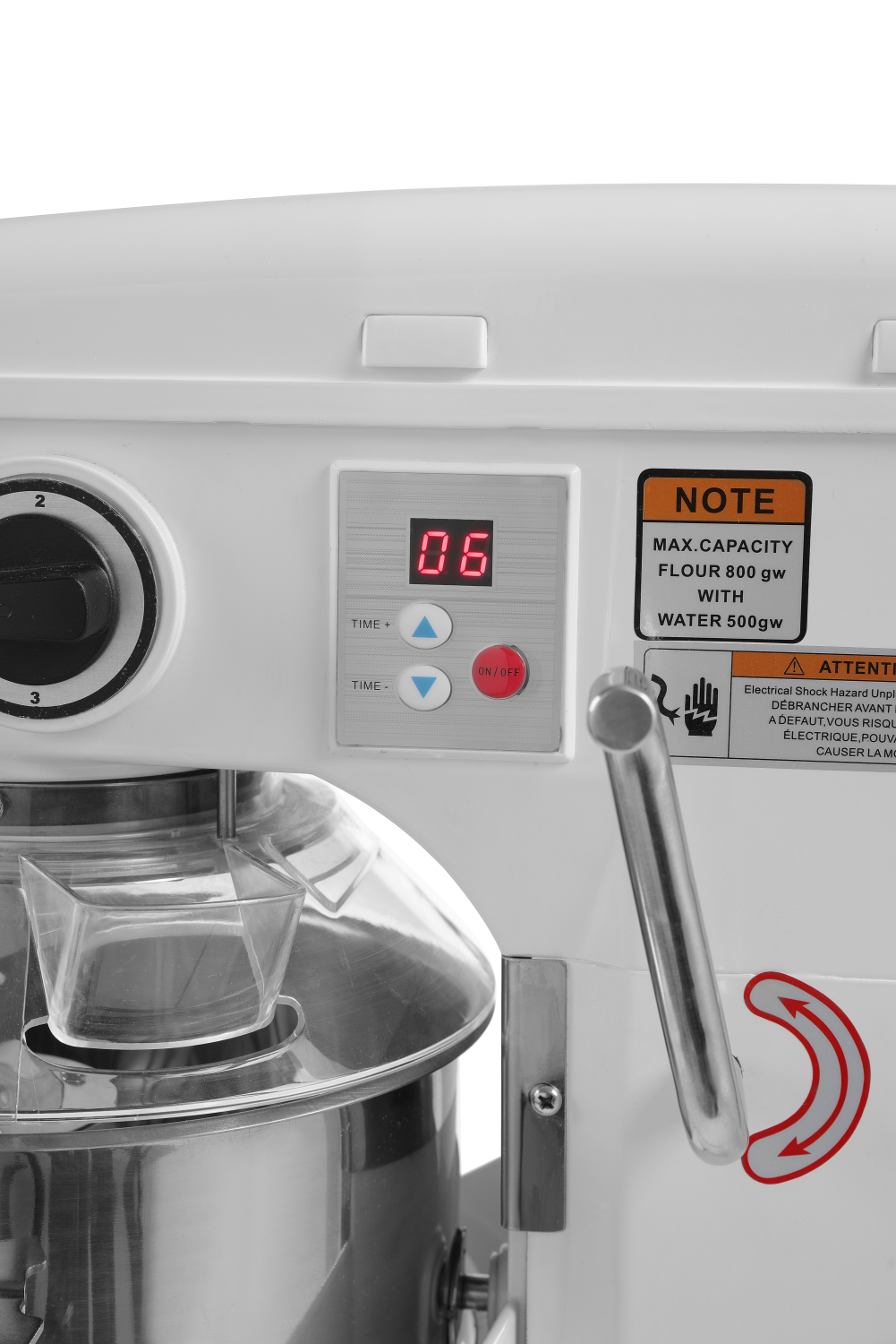 – Terasest korpus valge kõrgekvaliteedilise emailitud pinnakattega, taignasegamise anumal plastist kaitseekraan