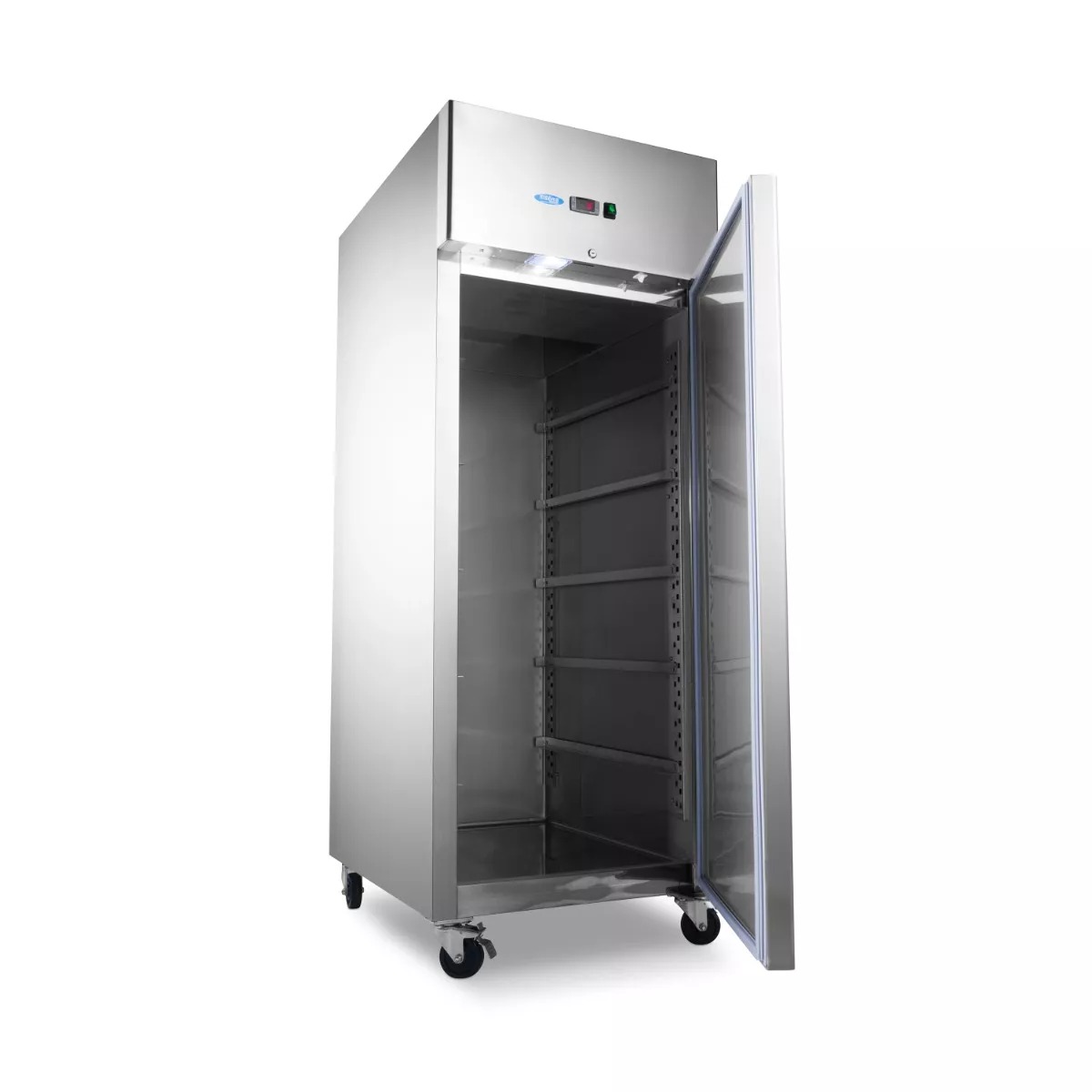 See võimas sügavkülmik, mille sügavkülmimaht on 800 liitrit, on iga pagariäri jaoks väärtuslik. Seestpoolt leiate 10 juhet 10 reguleeritava kõrgusega 60 x 80 cm suuruste restide paigutamiseks. Ruudud ei kuulu komplekti, kuid neid saab tellida eraldi. Lisaks on sügavkülmikul antibakteriaalse kummiga isesulguv uks. Ust saab lukustada ka lukuga ja sügavkülmikuga on kaasas kaks võtit. Selleks, et näha, millised tooted on sügavkülmikus, on sügavkülmiku sisemusse integreeritud LED-valgustus.