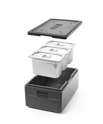 GN1/1 222mm with three containers GN1/3 200mm 3 and a Kaas with a silicone seal