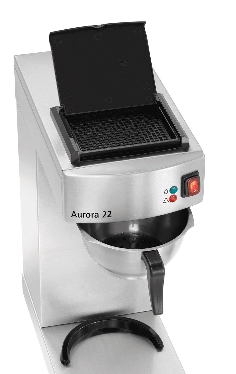Aurora 22 roostevabast terasest termopumba kannu mahutab kuni 1,9 liitrit kohvi – värskelt valmistatud 8 minutiga. Roostevabast terasest kütteelement tagab optimaalse soojusülekande. Praktiline pumbasüsteemiga kann võimaldab hõlpsat käsitsemist iseteenindusalal.