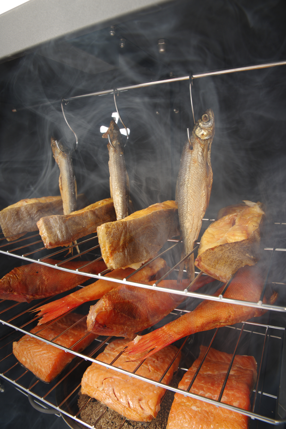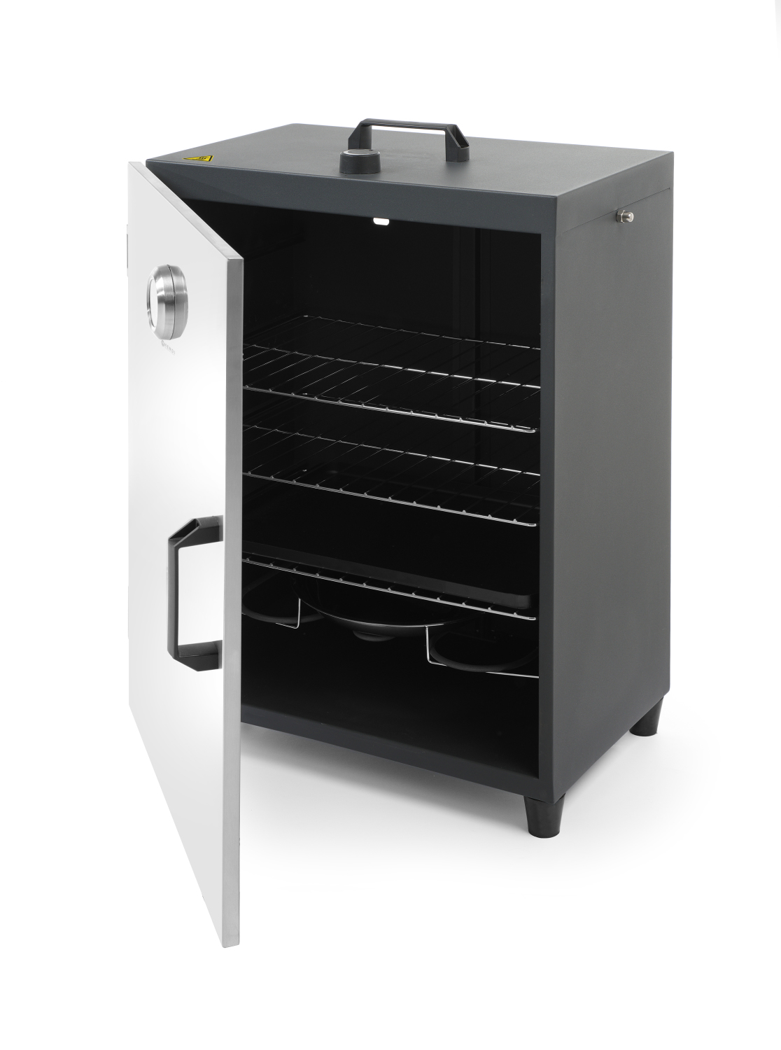 Suitsuahi sobib suurepäraselt erinevate toitude suitsutamiseks, nagu näiteks kala, liha, sink ja köögiviljad. Valmistatud roostevabast terasest, magnetiliselt sulguva topeltisolatsiooniga uksega. Temperatuur reguleeritav termostaadi abil, termomeeter on paigaldatud ukse sisse. Varustatud kuuma õhu ventilatsiooniavaga tagaküljel. Tarnitakse 3 restiga (400x279mm) ja 3 lihakonksuga.