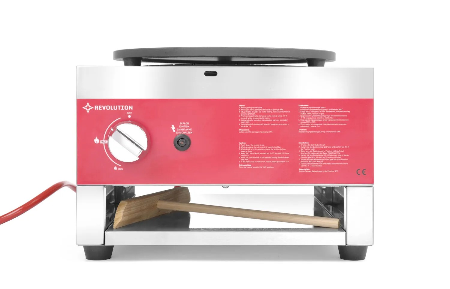 Valmistatud täielikult roostevabast terasest. Käsitsi reguleeritava leegi ja sädemepüüduriga gaasiklapp. Tähekujuline põleti parema soojusjaotuse tagamiseks. Ümberehituskomplekt erinevate gaasitüüpide jaoks. Suure läbimõõduga kaheksakandiline tähekujuline põleti ühtlaseks ja pidevaks kuumutamiseks. Emailkattega küpsetusplaat. Küpsetusplaat Ø 400 mm koos leegi reguleerimisega. Libisemiskindlad kummist jalad. Kaasa arvatud puust laotur.