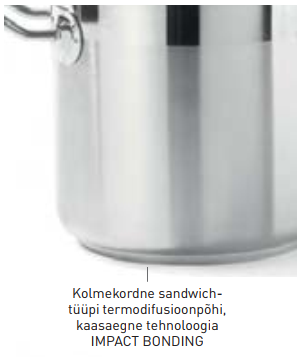 – Kolmekordses sandwich-tüüpi (roostevaba teras/alumiinium/roostevaba teras) termodifusioonpõhjas on ühendatud roostevabast terasest anuma magnetilised omadused ja alumiiniumi suurepärane soojusjuhtivus