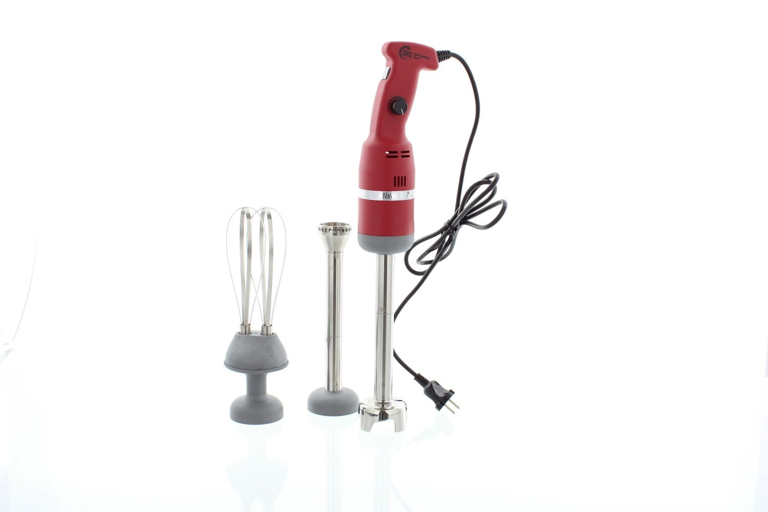 Komplektis on reguleeritava kiirusega saumikser, segamisotsik, vahustamisotsik ja homogenisaator tera