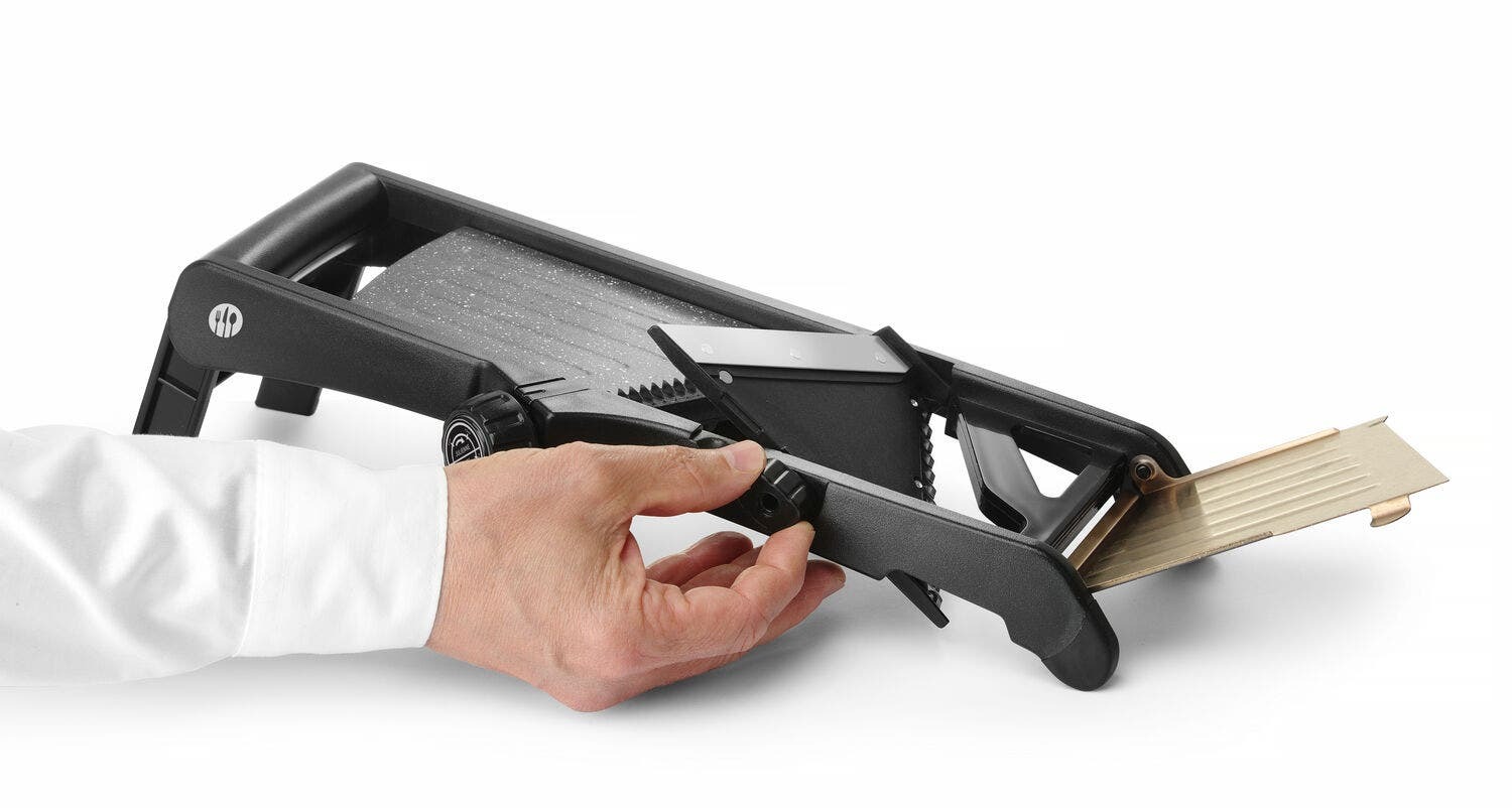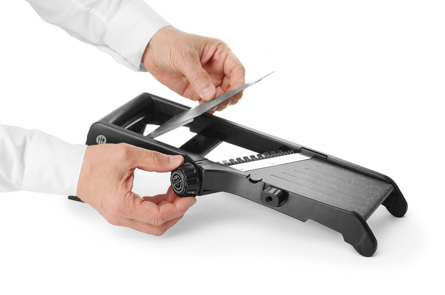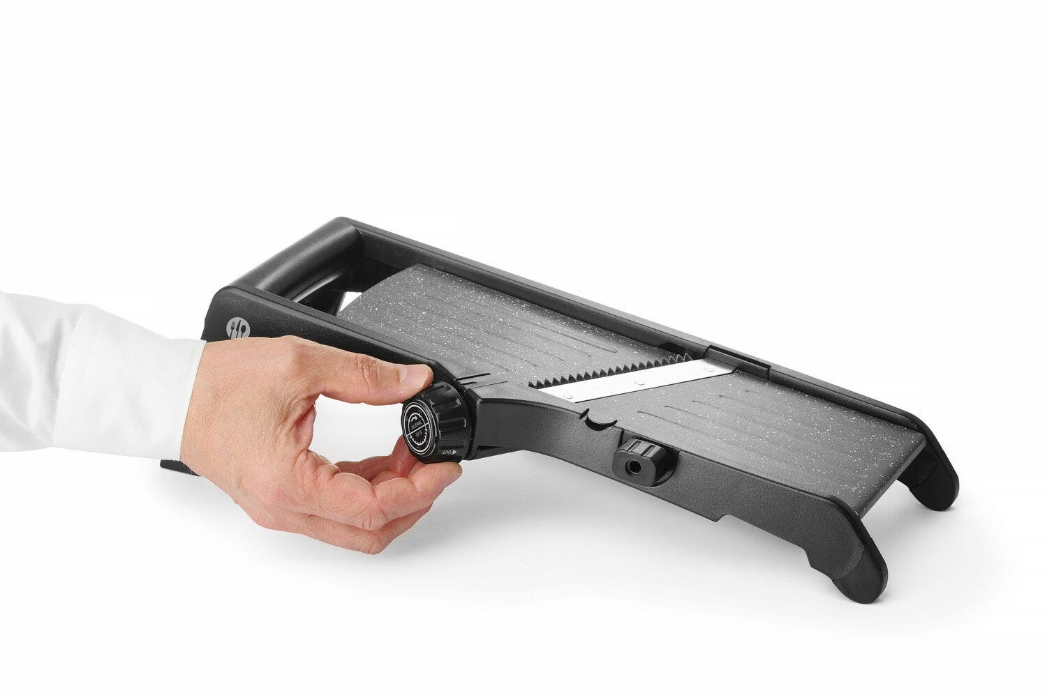 Jaapani mandoliin HENDI Samurai on kvaliteetne tööriist köögiviljade ja puuviljade lõikamiseks kõrgeima täpsusega, mida võivad oodata maailmatasemel professionaalid – see lõikab kiiresti, kuid tänu ülitervetele teradele täiesti õhukeselt.