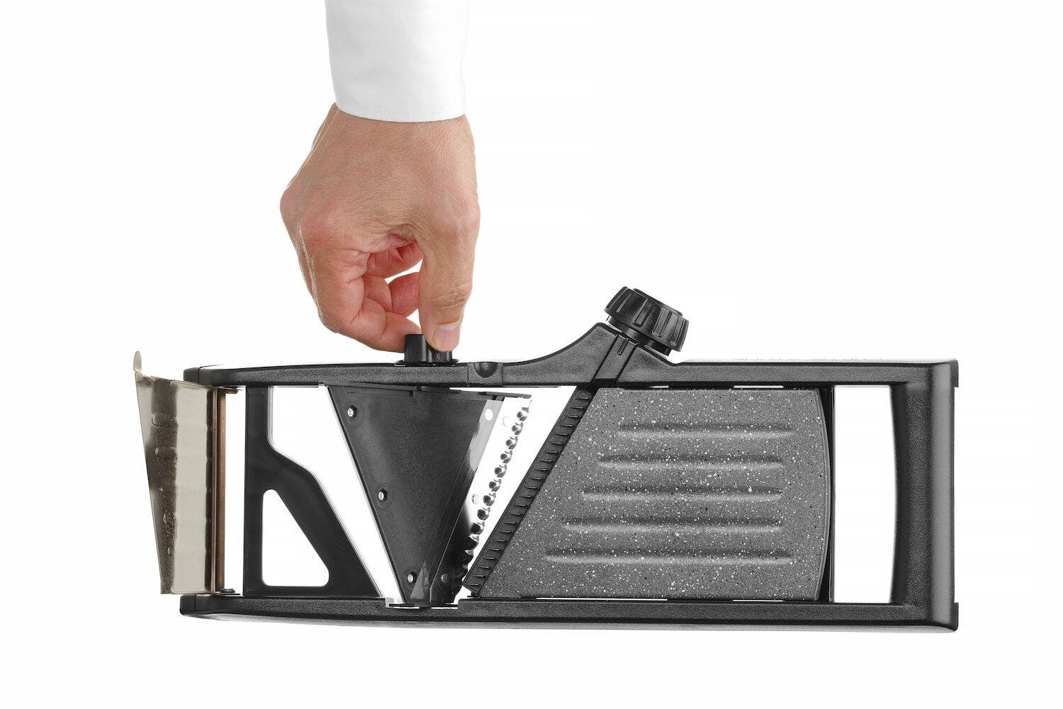 Meie mandoliin paistab silma ka kleepumisvastase kattega, mis hõlbustab köögivilja- ja puuviljatükkide libisemist, muutes ülikiire lõikamise veelgi mugavamaks.
