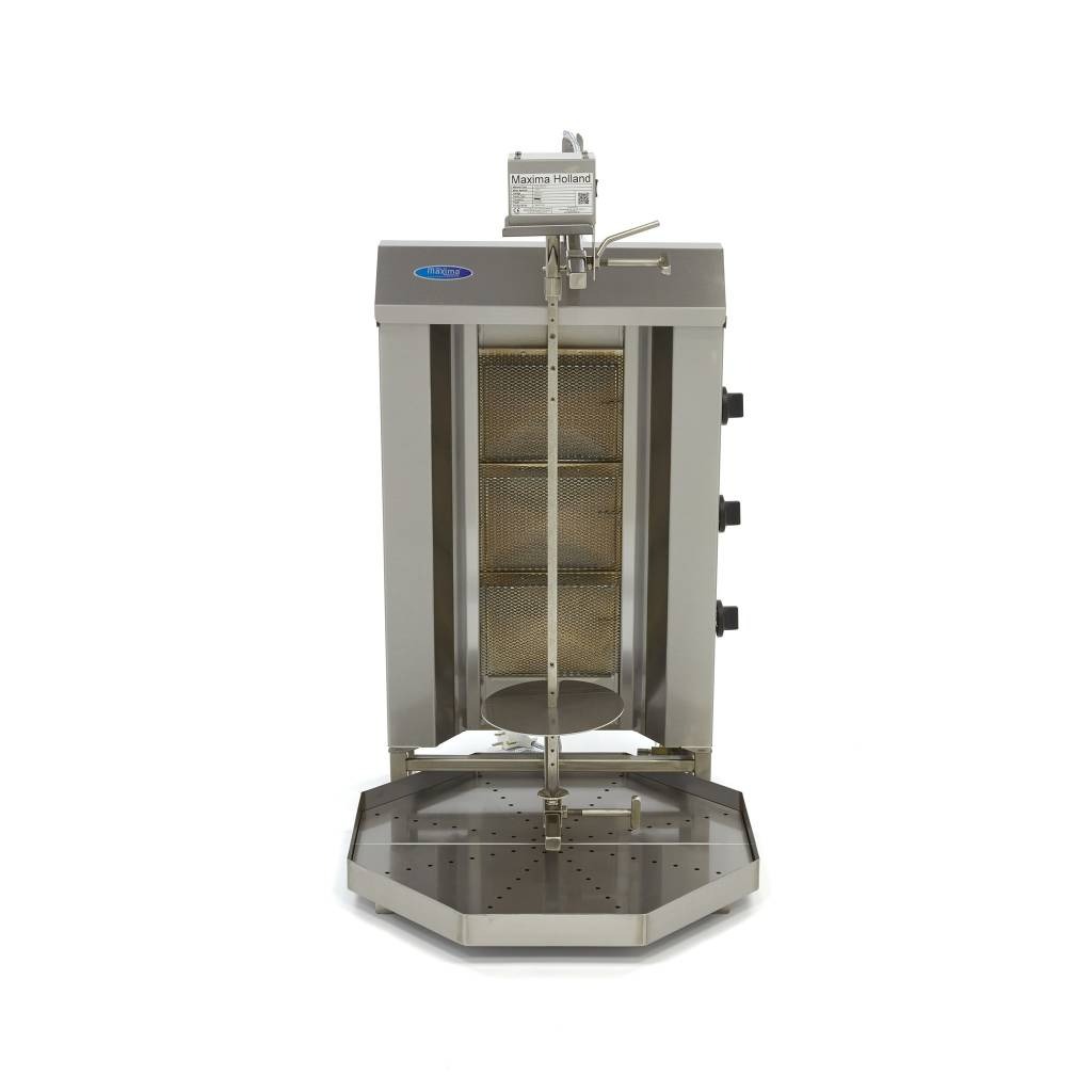 Kas te pakute kõige maitsvamaid grillitud liharoogasid, näiteks šawarma võileibu ja kebabroogasid? Selle kolme gaasipõletiga professionaalse kebabgrilliga saab liha kiiresti ja igast küljest kuldpruuniks grillitud. Põletite temperatuuri saab eraldi seadistada, nii et saate valida, kas liha küpsetatakse kergelt pealt või teiselt poolt või grillitakse pikemalt. Šawarma-grilli kasutatakse peamiselt šawarma-poodides ja grillitubades, kuid seda saab kasutada ka toiduautodes, suupistebaarides ja restoranides. Kuna grillvarrast saab täpselt reguleerida, saate alati parimat grillitud liha. Lisaks saab grillvarda pöörata kas vasakule või paremale.