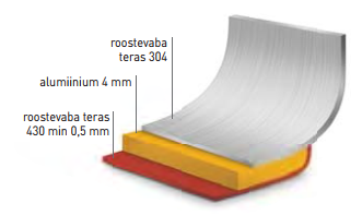 – Ühendab endas roostevaba terase suurepärase soojusjuhtivuse ja magnetilised omadused, mis on induktsioonkuumutamise jaoks vajalikud