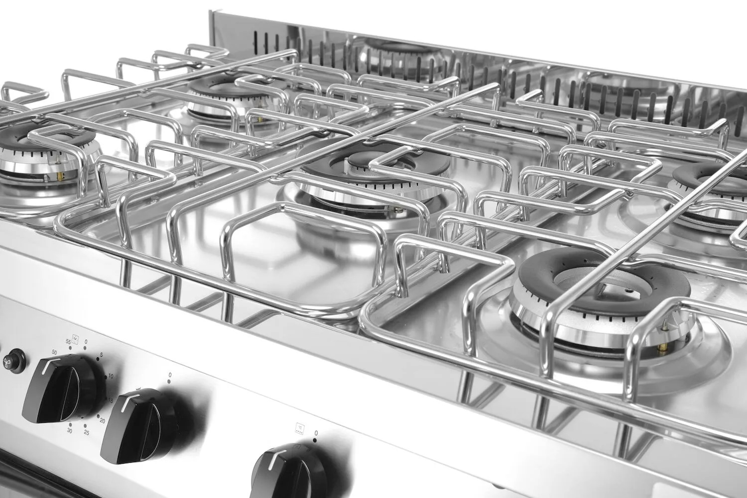 Põletid: Põletid: 1x 5 kW + 2x 3,5 kW + 2x 2,5 kW. Kõik põletid on varustatud termopaari ja gaasivoolu kaitsega juhuks, kui leek kustub. Köögi töötasapind on tehtud AISI 304 materjalist. Külje- ja tagumine korpus: AISI 430. Roostevabast terasest pannitugi. GZ50 maagaas. Kaasas lisadüüsid LPG silindrite jaoks. Elektrisüütaja vajab 230 V elektriühendust.