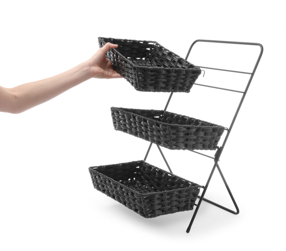 Pulbervärviga kaetud raamist ja 3 korvist koosnev komplekt –Korvid: 335x215x(H)80 mm