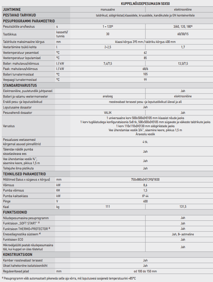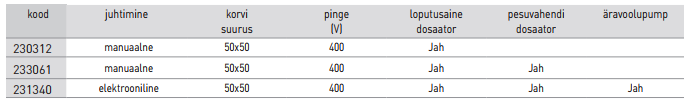 – Pesuaine- ja loputusvahendi dosaatorid ning tühjenduspump standardvarustuses