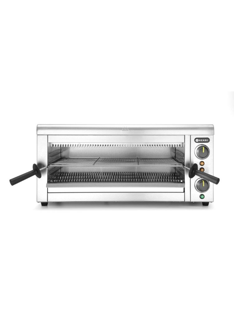 – Komplektis 2 emailitud malmist panni ja 2 resti GN1/1 – Roostevabast terasest tuulekaitse – Ülemine roostevabast terasest rest kastmete või varem valmistatud liha soojendamiseks – Komplekteeritud rõhureduktoriga gaasivoolikuga ühendus gaasiballooni külge