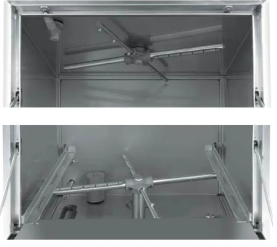 – Ülal paiknevad plastist pesukangid, pöörlevad roostevabast terasest loputuskangid