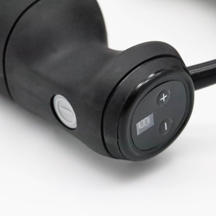 Saumblender nõuab jõudu, et seda kasutada, eriti jäikade või paksude koostisosadega. Seepärast on see saumikser varustatud tugeva käepideme ja ergonoomilise disainiga. Kummikate tagab hea haarde ja hoiab ära, et saumikser ei libiseks käest välja ja ei kukuks toidu sisse. Käepideme esiküljel on digitaalne näidik, millel saate hõlpsasti soovitud kiiruse seadistada. Käepideme küljel on sisse/välja lülitusnupp, et saumikserit ühe käega juhtida.