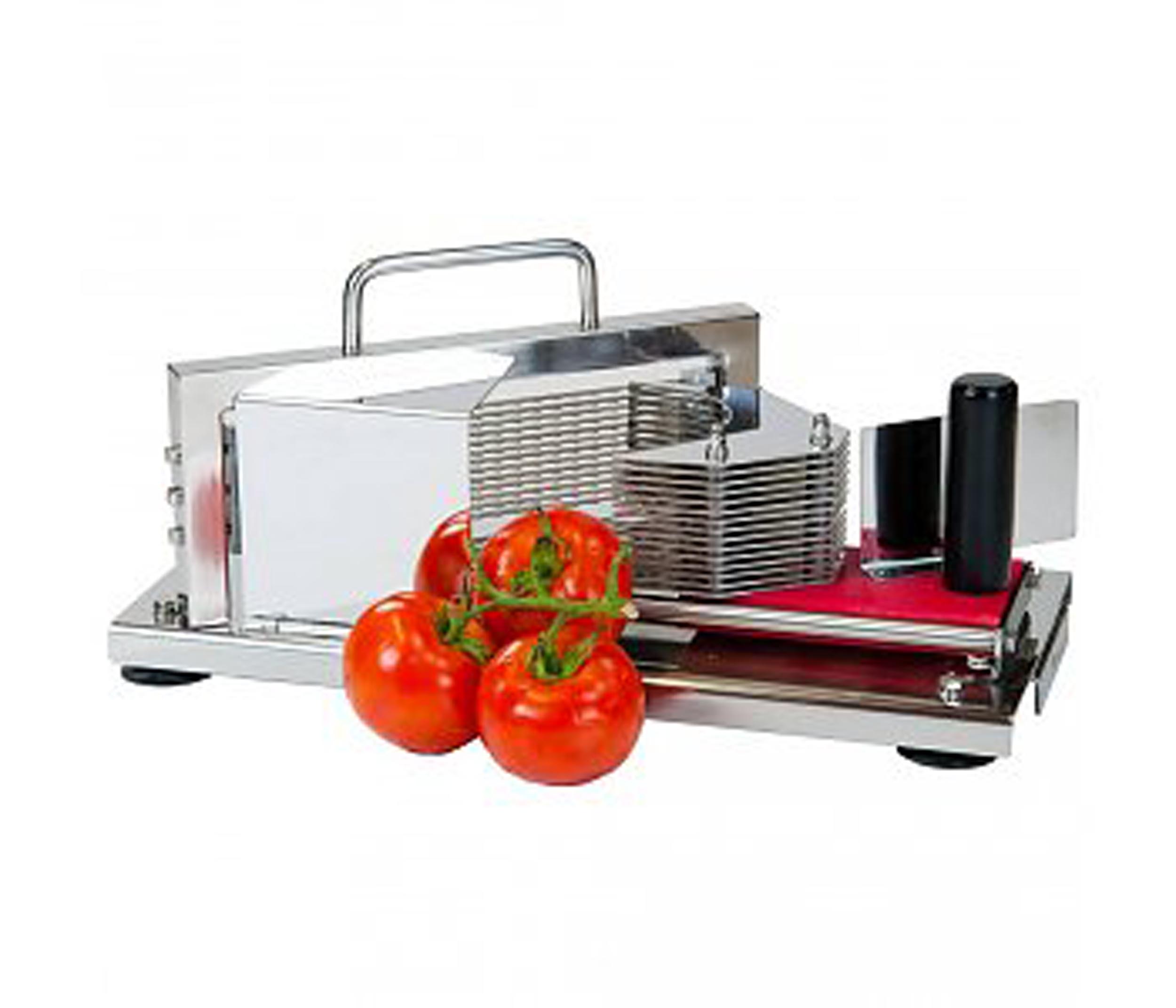 Kõigi koostisosade ettevalmistamine võib võtta palju aega, enne kui hakkate professionaalses toitlustusköögis toiduvalmistamisega tegelema. Selle vastupidava tomatilõikuriga säästate väärtuslikku aega ja lõikate ohutult ja kiiresti ilusaid 4 mm viilusid. Tomatilõikuri teine eelis on see, et kõik viilud on ühtlased. See sobib ideaalselt võileibadele, pitsadele või muudele roogadele mõeldud topside valmistamiseks. Peale tomatite kiire lõikamise saate lõigata ka muid värskeid esemeid, näiteks kiivit.