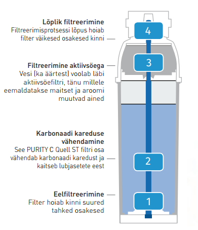 PURITY C Quell ST filtrikassetid on spetsiaalselt loodud kasutamiseks toitlustusasutustes, toitlustusettevõtetes ja automaatides. Need vähendavad joogivee karbonaadi karedust, vähendades sellega oluliselt katlakivi tekke ohtu ühendatud otsaseadmes. Samuti seovad nad metalliioone, nagu plii või vask. Filter vähendab maitset ja aroomi segavaid aineid (näiteks kloorijääke) nii filtreeritud kui ka möödavooluvees. BRITA Professional veefiltrid on sõltumatute instituutide testimise ja jälgimise põhjal heaks kiidetud toiduga kokkupuutumiseks.