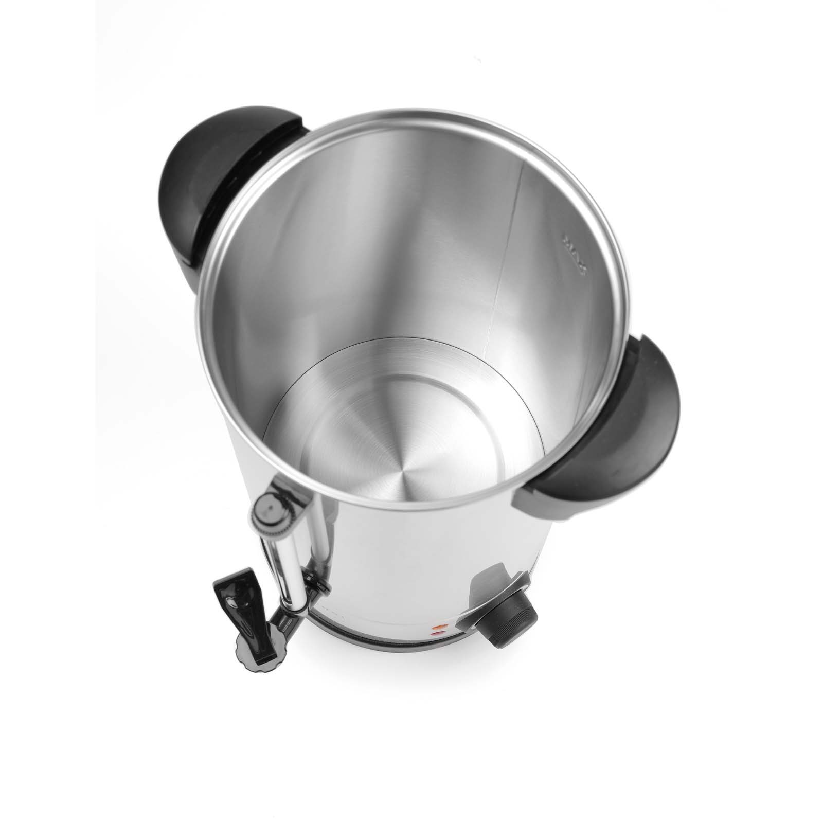 Roostevabast terasest anum Isoleeritud polüpropüleenist käepidemed ja lekkekindel kraan Termostaat temperatuurivahemikus kuni +110 °C Ideaalne hõõgveini või kuuma vee valmistamiseks Keemise aeg ±75 min Ei sobi šokolaadi soojendamiseks