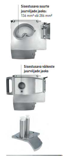 – Tarvikud juur- ja köögiviljade purustamiseks, peenestamiseks, suur valik lõikekettaid, mis võimaldavad erinevate suuruste ja kujudega lõikeid