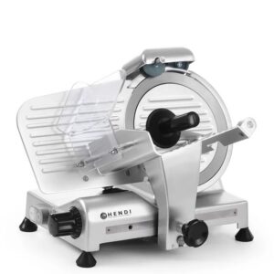€ 410,40Lisa korviMõeldud professionaalseks kasutamiseks äriotstarbel. Korpus valmistatud pinnakattega alumiiniumist, mittelibisevate jalgadega. Kaldtera valmistatud karastatud roostevabast terasest. Õhkjahutusega mootor, ülekuumenemise kaitsega. Lisavõimsusega mootor kõva liha lõikamiseks. Varustatud terakaitsega ja sisseehitatud teritajaga. Kandur kaitsekihiga ja püstise lukuga hoidik. Hõlpsalt ja kiiresti lahtivõetav puhastamiseks. Vastab kõikidele standarditele äriotstarbel kasutamine, nagu näiteks: – 0-paksuse seadistamise korral jääb tera terakaitse taha. – Aktiveerimiskaitse, sellal kui teritaja või terakate on eemaldatud. – Kandurit saab lukustada ja eemaldada ainult siis, kui tera on seadistatud 0-paksusele. Ei sobi juustu lõikamiseks, see on võimalik ainult eraldi saadaoleva mittenakkuva kattega noa abil.